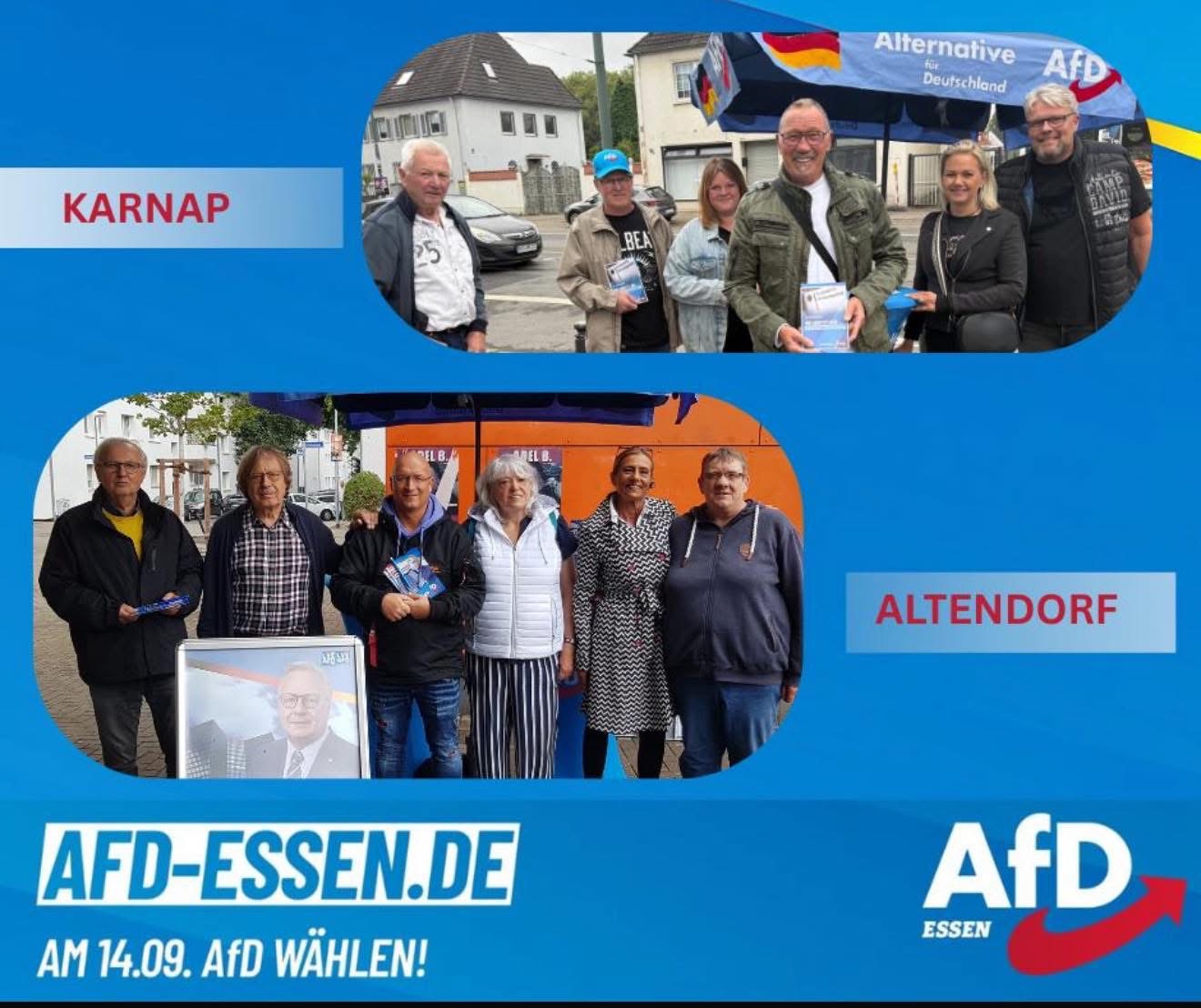 Am heutigen Samstag waren wir mit unseren Infoständen in Karnap und Altendorf unterwegs. Dabei haben wir viele gute Gespräche geführt.